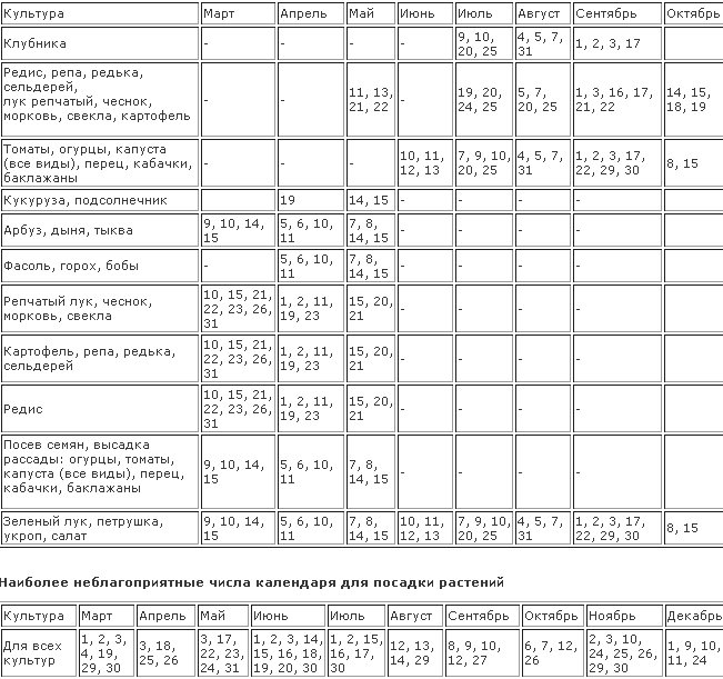 Растения чутко реагируют на смену лунных ритмов. Если вы хотите, чтобы огород радовал хорошим урожаем овощей, а сад — плодами, не забывайте заглянуть в лунный календарь и сверить с ним время посадки растений (таблица 1).