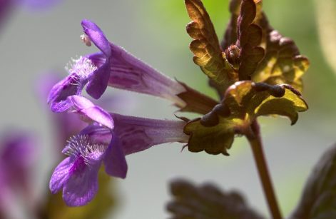 Будра плющевидная (грудная трава). Это очень полезное растение, хотя редко в каком травнике встретишь его описание. Оно невысокое — 10-15 см, цветки сине-фиолетовые, запах напоминает мяту, за что в народе его прозвали «собачьей мятой…