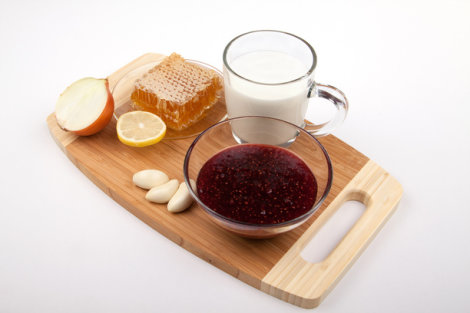 Беру среднюю репчатую луковицу, мелко режу ее и заливаю стаканом горячего молока. Накрываю стакан блюдцем и даю смеси настояться минут пятнадцать-двадцать. После этого добавить столовую ложку меда и теплым выпить, не спеша.