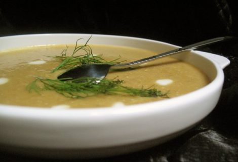 Затем берем отдельную миску и сливаем в нее овощной бульон, а готовые овощи кладем в миксер и измельчаем их, при этом постепенно добавляя молоко. Получается довольно густое пюре. Солим и перчим его по вкусу. Теперь нужно взять слитый бульон и разбавить ним суп-пюре, до той консистенции, которая вам нравится. Вот и все, наше блюдо готово.