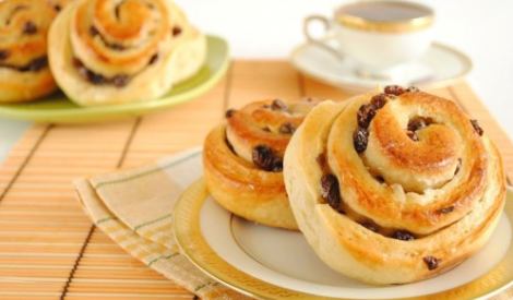 Как сделать плюшки? Для приготовления вам понадобятся: куриные яйца – 1 шт., молотый шафран – 5 г, творог – 220 г, пшеничная мука – 7 ст., молоко – 2 ст., темный изюм – 100 г, сливочное масло – 7 ст. ложек, сухие дрожжи – 50 г.