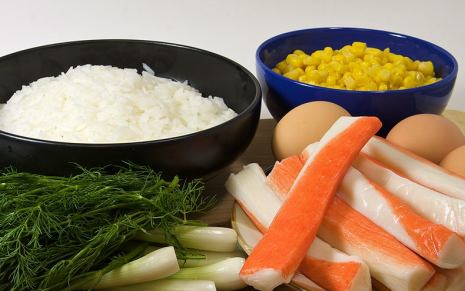Рецепт приготовления салата из крабовых палочек, кукурузы и риса