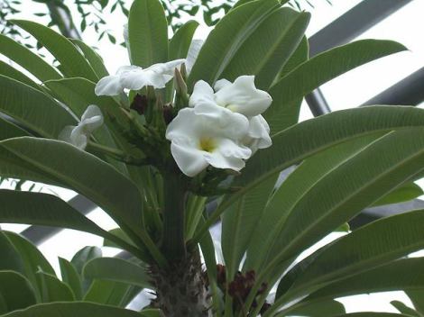 • У пахиподиума суккулентного — короткий, толстый главный стебель, которого вертикально вверх поднимаются разветвленные побеги. Листья у него достаточно узкие, ланцетные. Цветы у этого вида менее крупные, чем у остальных, красивого розового цвета.